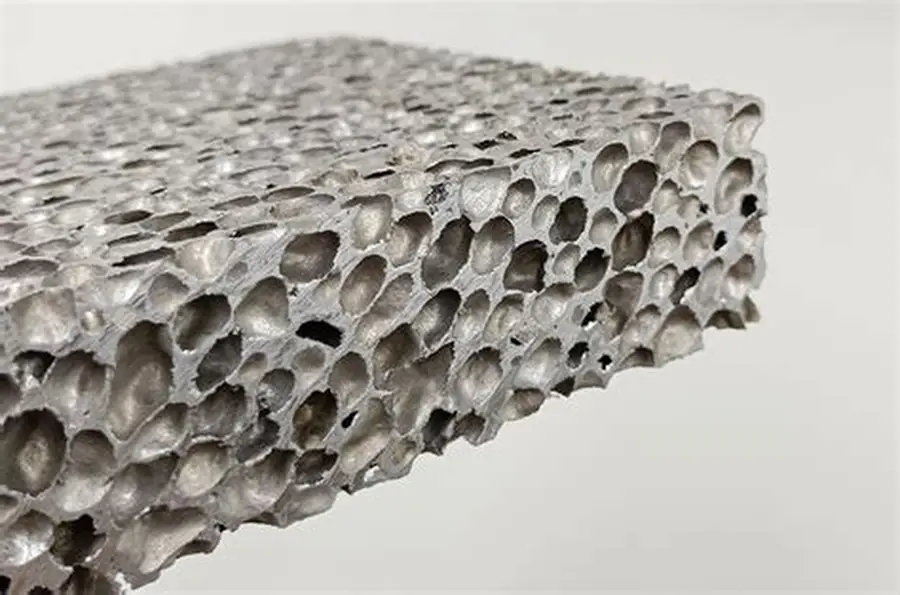 Pour un architecte, le poids est l’ennemi. L’acier est résistant mais lourd ; l’aluminium est léger mais fond vite. La CMF (Composite Metal Foam) change la donne. Imaginez une plaque d’acier inoxydable dont 70 % du volume est constitué de bulles d’air. Avec une densité de 3,3 g/cm³ (contre près de 8 pour l’acier classique), ce matériau permet d’envisager des surélévations ou des structures en porte-à-faux audacieuses, là où le poids du béton ou de l’acier plein serait prohibitif. C’est le rêve de la « structure osseuse » appliqué au BTP : une matrice poreuse ultra-optimisée.